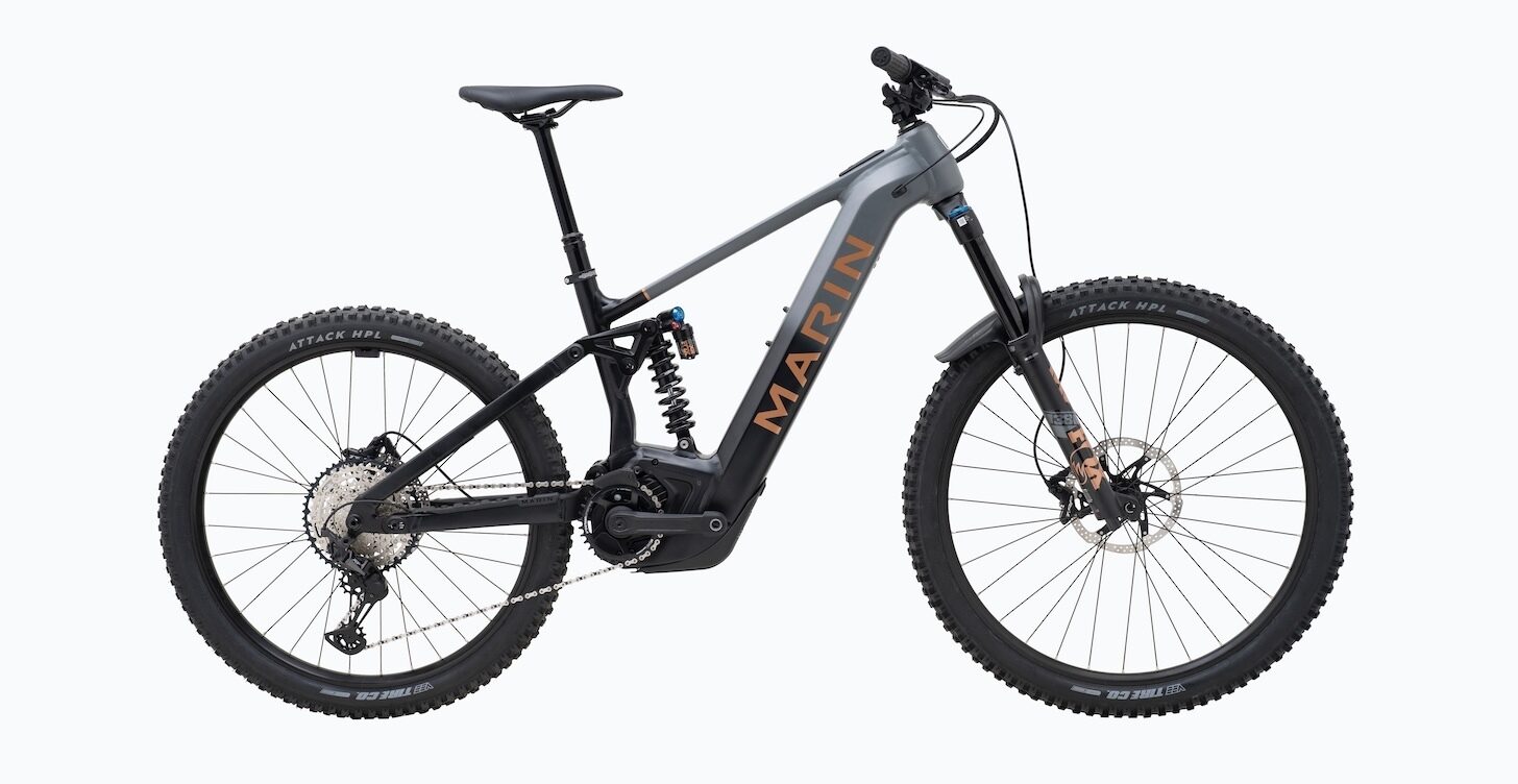 Marin developed the all-new Series 4 aluminum frame in conjunction with the new human-powered Alpine Trail models and notable new features shared between the platforms. Firstly, travel has been increased by 10mm at both ends, now standing at 170mm (f) and 160mm (r), which is also an increase of 10mm beyond the current Shimano-equipped models. MultiTrac 2 LT (“Long Travel,” 150mm+), with rear pivots relocated from the seatstays to chainstays, makes its eMTB debut and delivers the suspension performance and tunability demanded of the longer travel. With MultiTrac 2 LT, the benefits of relocating the rear pivot points from the seatstay to the chainstay become apparent, as it reduces anti-rise, allowing for better chassis control while braking, more mid-stroke support, and better feel at bottom out. Furthermore, relocation of the pivots provides the added benefit of allowing for adjustable chainstay lengths and bottom bracket heights. Ultimately, it’s a better-riding, better-performing suspension system made possible by the new pivot placement.